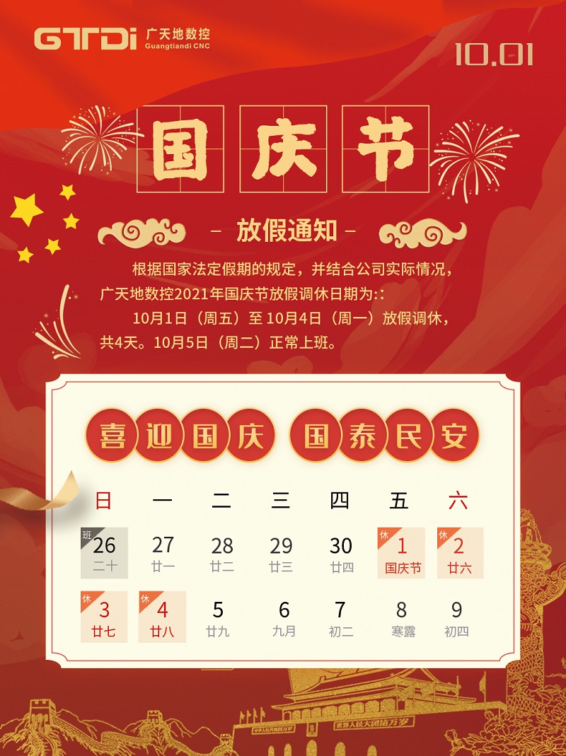 摩根娱乐数控2021年国庆节放假时间安排通知