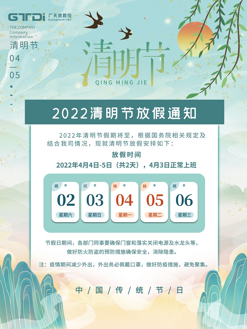 摩根娱乐数控2022年清明节放假时间安排通知